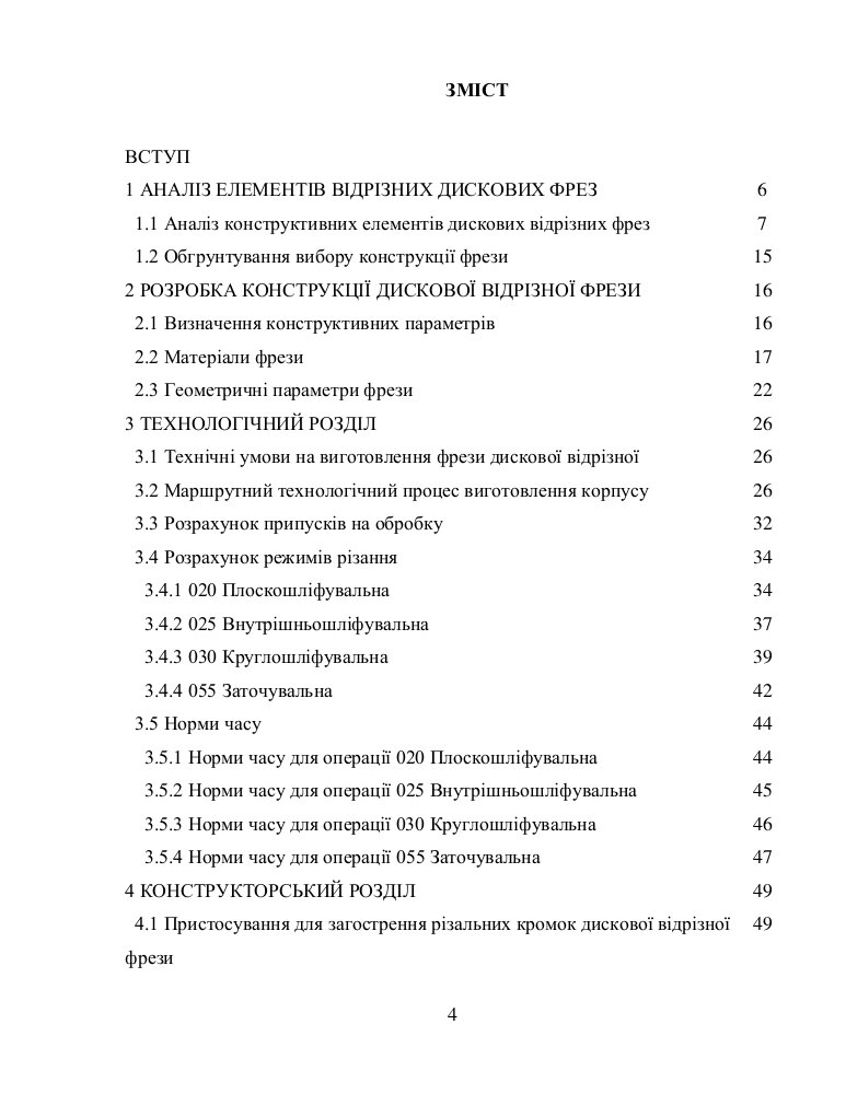 Об’єктом проектування та випробувань при виконанні дипломного проекту є фреза дискова відрізна, що відрізає стандартні алюмінієві профіля. Тут спроектована конструкція інструменту, яка б забезпечила відрізку профілю, розроблений технологічний процес та виконані розрахунки всіх потрібних значень для створення дискової відрізної фрези. До дипломного проекту входить аналіз конструкційних елементів дискових відрізних фрез, розробка конструкції дискової відрізної фрези, технологія виготовлення
