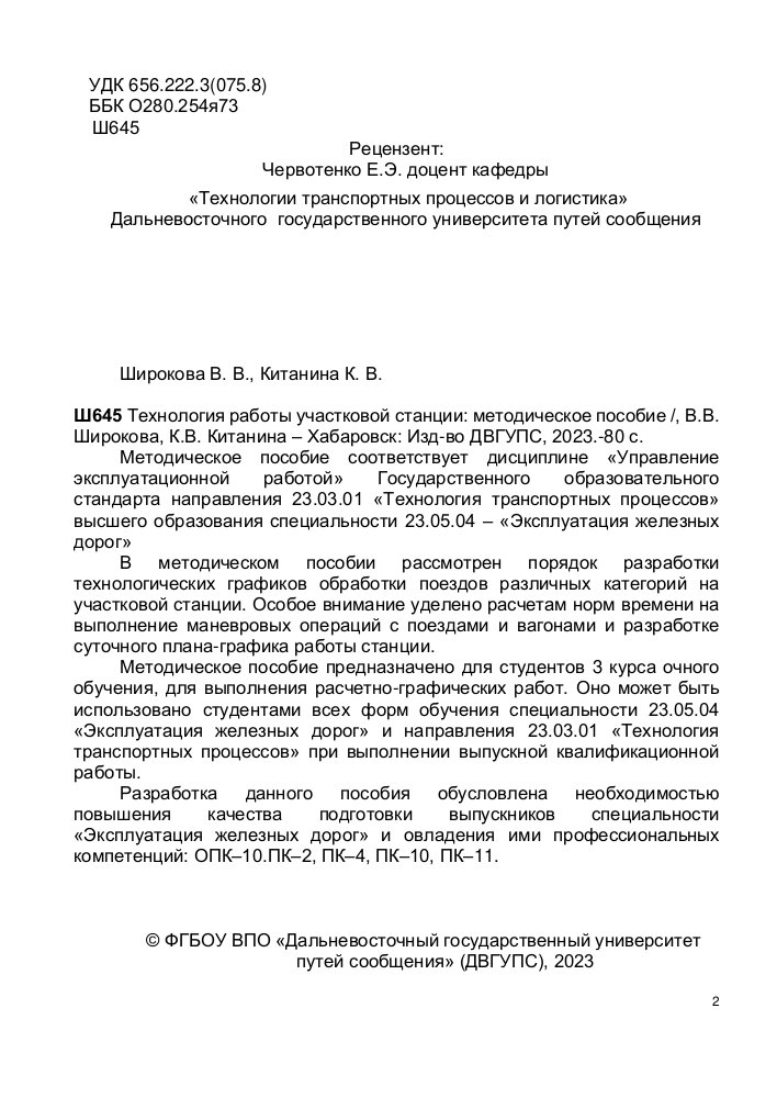 Технология работы участковой станции. Широкова В. В., Китанина К. В.