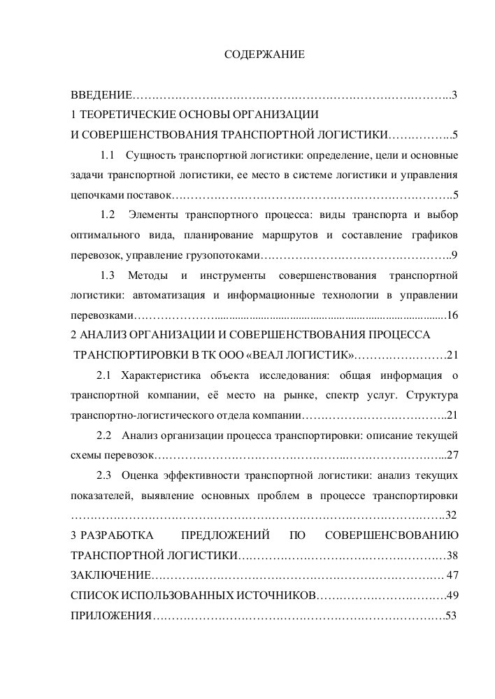 - провести анализ организации и совершенствования процесса транспортировки в транспортной компании ООО «Веал Логистик» город Екатеринбург;