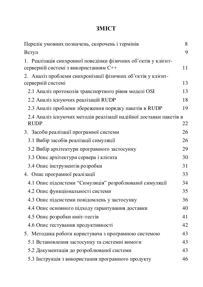Дипломну роботу виконано на 82 аркушах, вона містить 4 додатки та перелік посилань на використані джерела з 7 найменувань. У роботі наведено 20 рисунків та 2 таблиці. Реалізовано синхронну поведінку у симуляції фізичних об’єктів клієнт-серверної системи, використовуючи мову програмування С++. Програма використовує розроблений гнучкий механізм передачі даних з